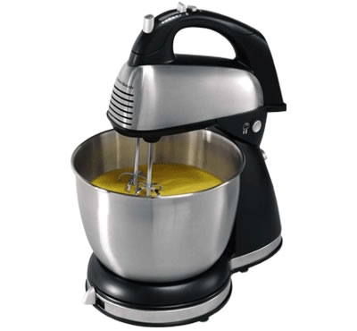 batidora de pedestal negro con acero inoxidable